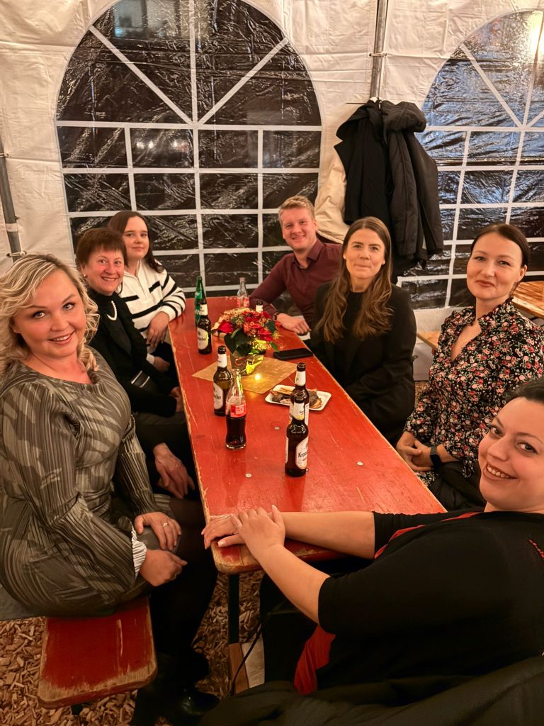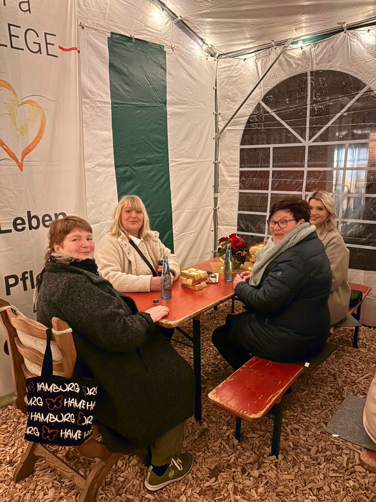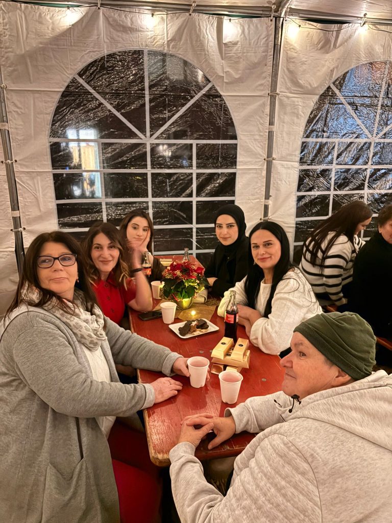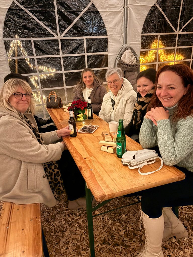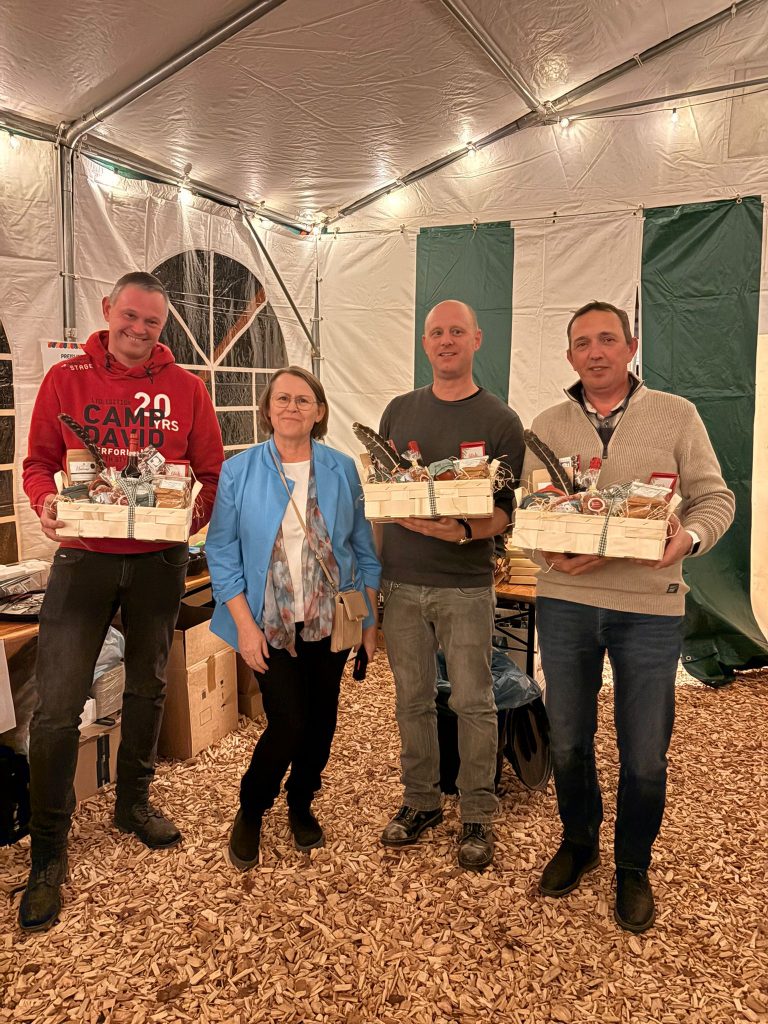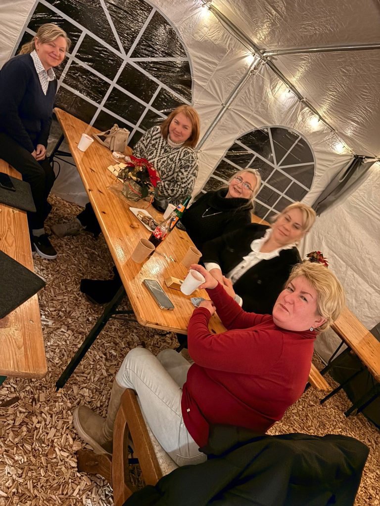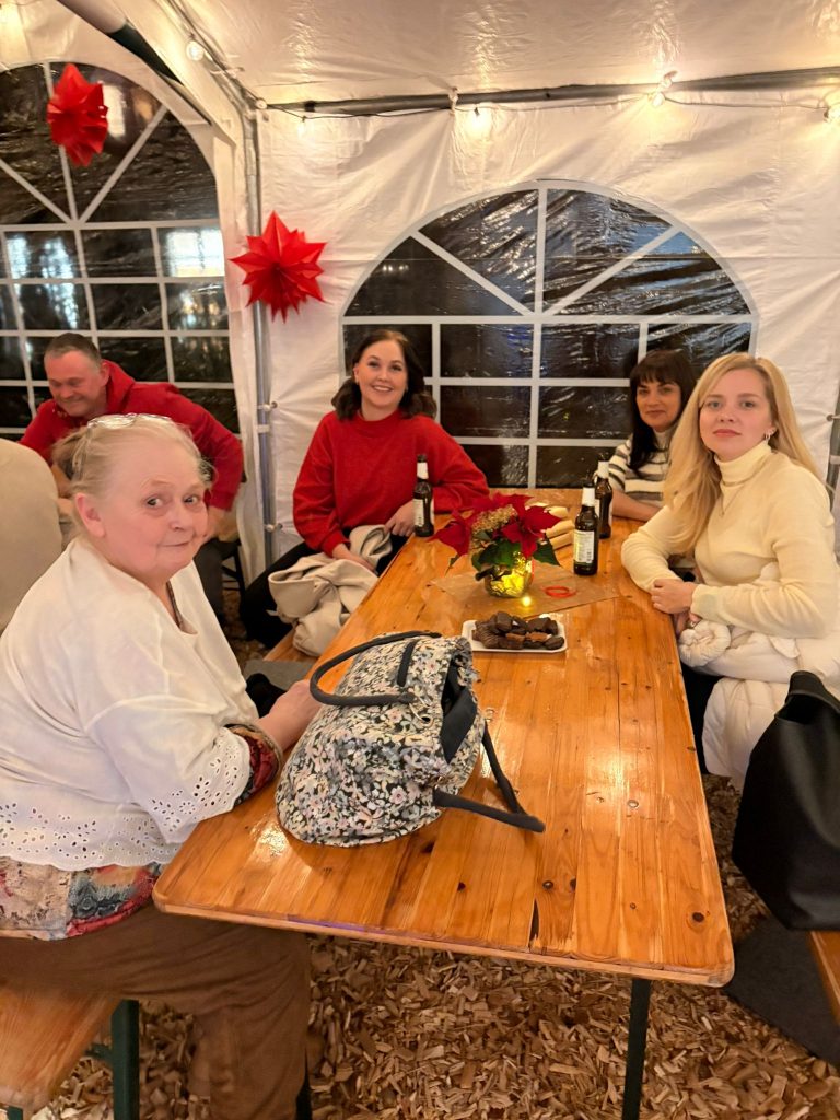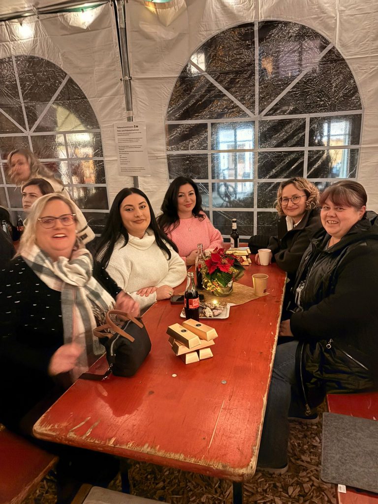 Draußen erwartete unsere Gäste ein echtes Highlight: Ein großer, festlich beleuchteter Weihnachtsbaum, der sich schnell zu einem beliebten Selfie-Spot entwickelte. Währenddessen sorgten unsere engagierten Hausmeister am Grill für köstliche Leckereien. In den beheizten Zelten wurde anschließend in gemütlicher Atmosphäre gemeinsam gegessen, gelacht und gefeiert.